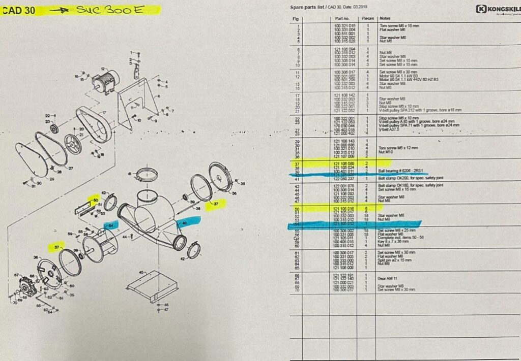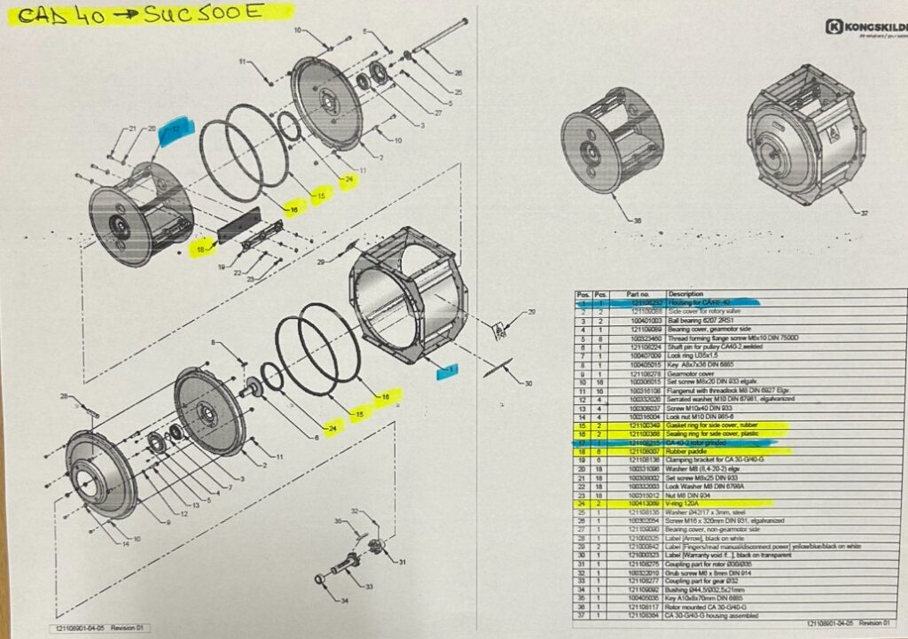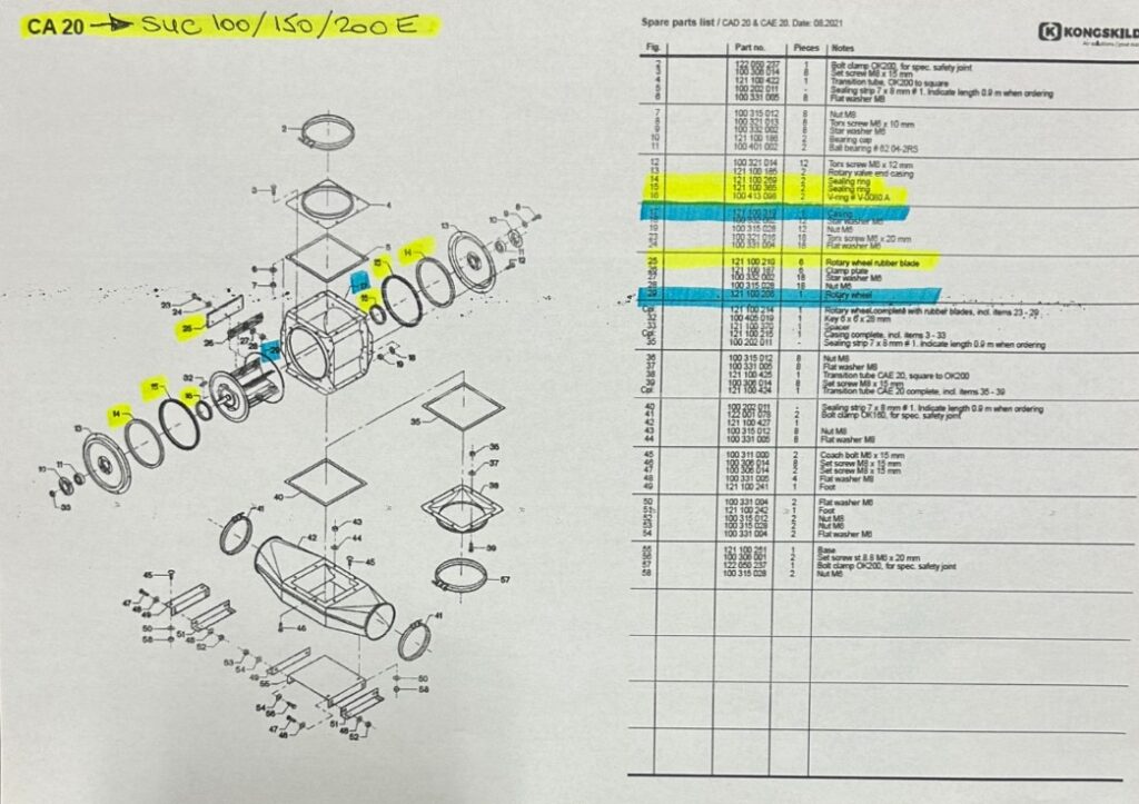 PIESE SCHIMB PENTRU TRANSPORTOR PNEUMATIC MODEL SUC 100 / 150 / 200 E ECHIPATE CU VALVE ROTATIVE ( ECLUZE ) tip CAD 20